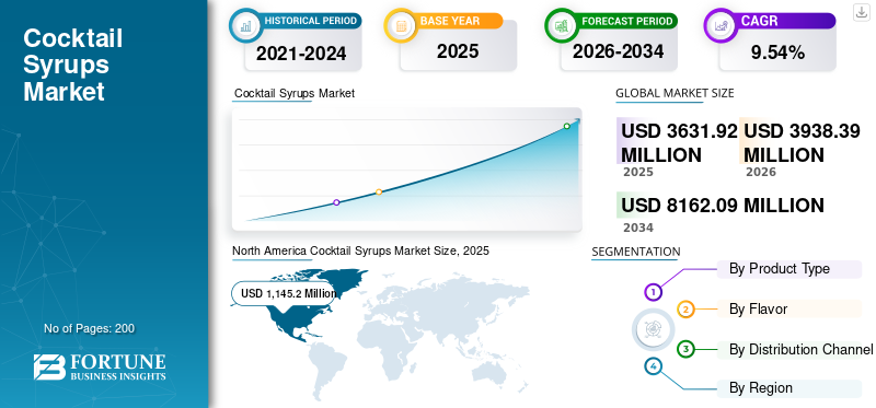 حجم سوق شراب الكوكتيل، والمشاركة وتحليل الصناعة، حسب نوع المنتج (الفواكه، والأعشاب والتوابل، والفانيليا، وغيرها)، حسب النكهة (الحلو والمالح والحامض والنعناع وغيرها)، حسب قناة التوزيع (الحانات والحانات والمطاعم والفنادق والأسر)، والتوقعات الإقليمية، 2026-2034