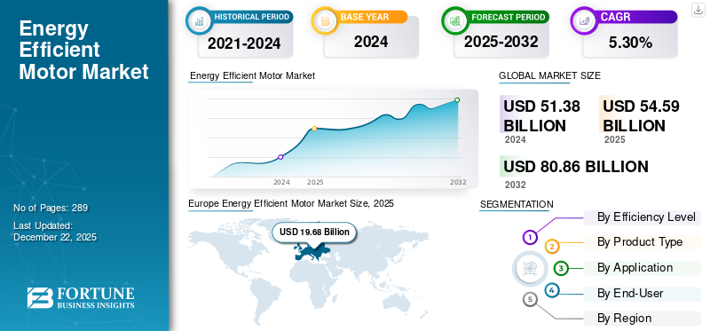 Der weltweite Markt für energieeffiziente Motoren wurde im Jahr 2025 auf 54,6 Milliarden US-Dollar geschätzt und wird voraussichtlich von 57,94 Milliarden US-Dollar im Jahr 2026 auf 87,58 Milliarden US-Dollar im Jahr 2034 wachsen, was einem durchschnittlichen jährlichen Wachstum von 5,30 % im Prognosezeitraum entspricht. Europa dominierte den Markt für energieeffiziente Motoren mit einem Marktanteil von 36,04 % im Jahr 2025.