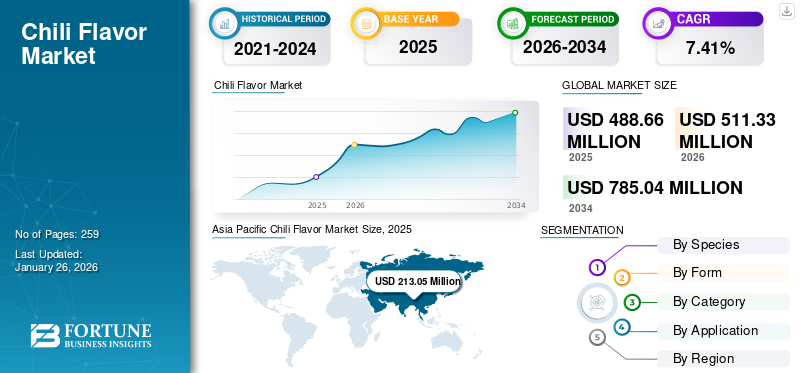 チリフレーバー市場規模、シェア、業界分析、品種別(赤唐辛子、青唐辛子、黄唐辛子)、形態別(液体・乾燥)、カテゴリー別(有機・従来型)、用途別(家庭部門、外食産業部門、工業部門)および地域別予測、2026-2034年